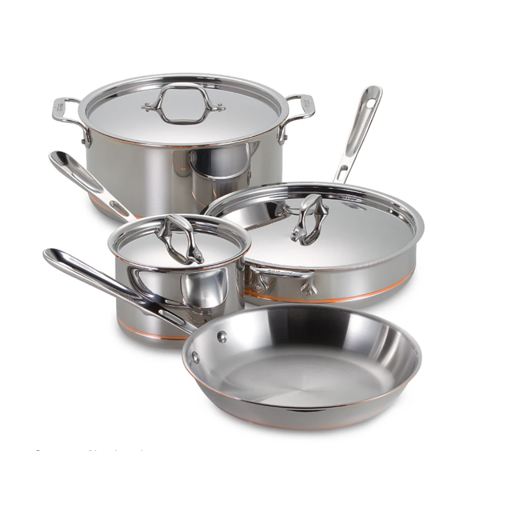 This is a professional-grade starter kit with some quality pieces to handle most day-to-day cooking tasks. The All-Clad 7pc Copper-Core Cookware Set makes a great addition to any kitchen, as well as a generous and practical wedding gift.