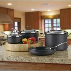 Cuisinart Cookware has The Best of the Basics! This Chef’s Classicâ„¢ Non-Stick Hard Anodized 7-Piece Cuisinart Cookware Set includes nonstick pots and pans for all ocassions. Start the day with a delicious hot breakfast from oatmeal to omelets. Prepare grilled sandwiches and slow-cooked chili for lunch. Then finish the day with sauteed fillets and perfectly-cooked pastas. The 7-piece Cuisinart Chef’s Classic nonstick cookware set includes everything you need to make cooking easy.