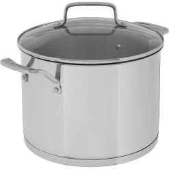 Upgrade your old kitchen cookware with the Professional Series Stainless Cookware Set from Cuisinart. Perfect for those who love a sleek, modern aesthetic, this set includes eleven must-have pieces for every kitchen: one 2-quart saucepan and cover, one 3-quart saucepan and straining cover, one 3-quart sautĂ© pan with helper handle and cover, one 8-quart stockpot with cover, one 8″ nonstick skillet, one 10″ skillet and one 18″ steamer insert. The covers are made from tempered glass and fit tightly to seal in moisture and flavor. This durable set features Cuisinart’s PowerBond™ high-impact bonded base which heats up quickly and distributes heat evenly to prevent hotspots. The cast stainless steel Cool Grip™ handles stay cool during use and are contoured for a secure grip, making it easy to transfer and serve. These versatile pieces are induction ready and can be used in the dishwasher and freezer. They’re oven-safe up to 500°F (350°F for the glass lids). For a cookware set that will provide you a lifetime of exceptional performance, order your Cuisinart Professional Series Stainless Cookware Set today!