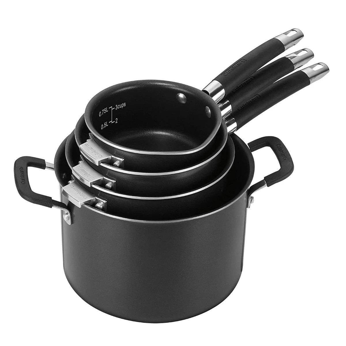 They also feature measurement markings, making cooking easy. And the silicone handles keep your hands safe from the heat! This set works perfectly in any kitchen!