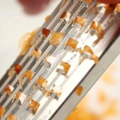 Featuring Cuisipro’s unique Surface Glide Technology, the Cuisipro Coarse Rasp Grater enables you to quickly and easily grate carrots for a salad, cheese for an omelette, or chilled butter for a pastry dough! Shallow grooves along the double-sided acid-etched cutting surface reduce resistance and extend blade length providing more cuts with each pass so you can get more done with less effort. An ergonomic handle design offers comfort and control while the non-slip foot provides stability when grating on countertops or cutting boards. With a durable steel frame surrounding the stainless steel cutting surface, the Coarse Rasp Grater is sturdy enough for a wide range of grating tasks. The clear plastic protective cover slides on the grater for safe storage, but can also be reversed to collect and measure food while you are grating so you always get just the right amount. Dishwasher safe, but hand-washing is recommended.