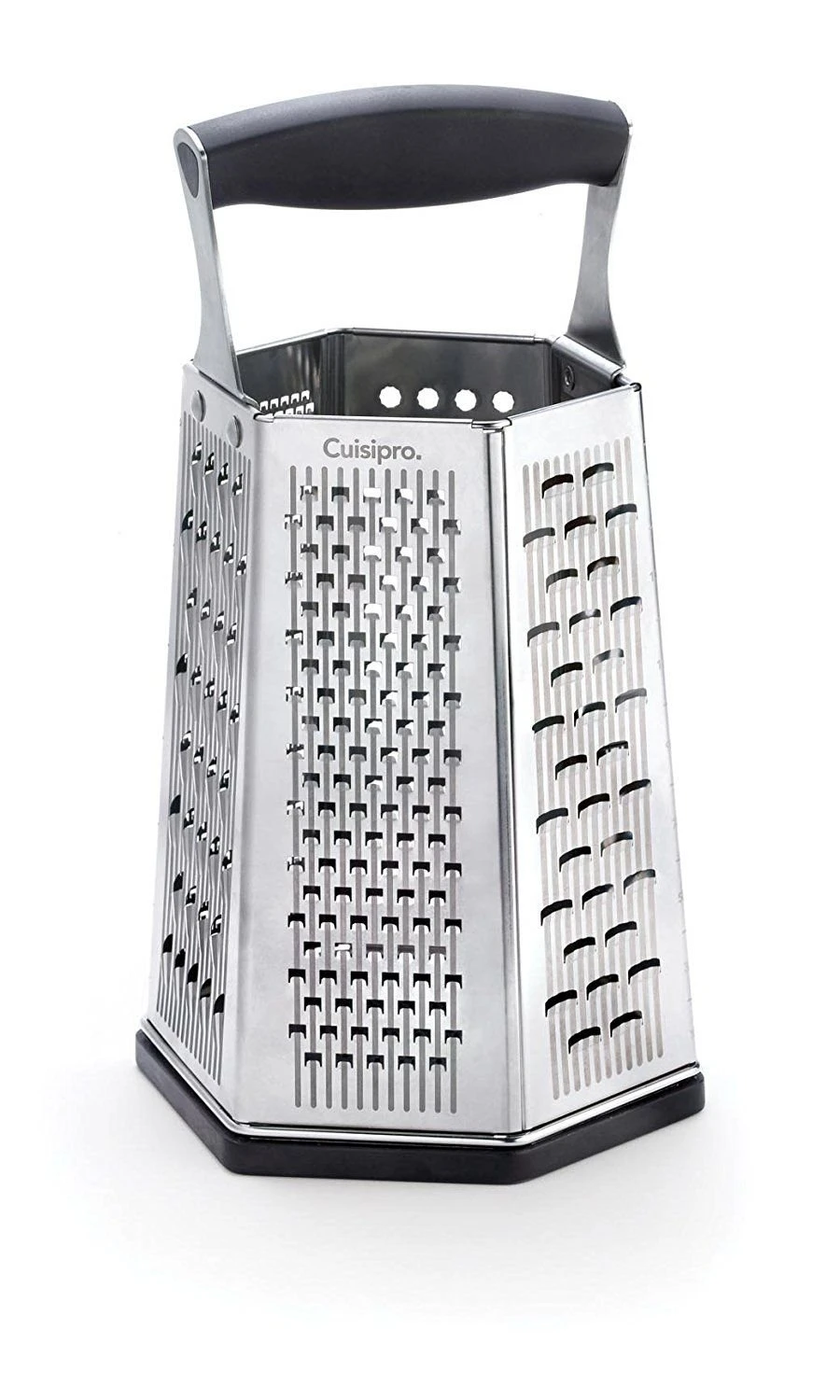 Prepare your favorite meals with shredded cheeses and vegetables with Cuisipro’s 6 Sided Grater! This product includes six different grating surfaces to compliment your favorite textures. Attached to this base of this unit is a garlic grater, which shreds fresh ginger root while leaving unwanted fibers behind. Cuisipro’s 6 Sided Grater is a quality and convenient way to shave vegetables for your favorite meal or chocolates for a delicious treat!