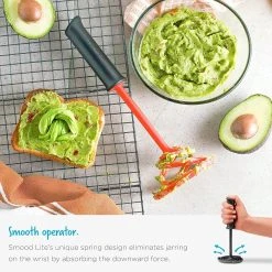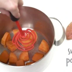 Mash up those boiled potatoes without having to use expensive hand beaters or immersion blenders with the Dreamfarm Smood Lite in Red! Made from non-stick safe nylon, its durable construction and unique design make it the BEST potato masher in the world. You place it directly above your potatoes, avocados, and whatever food you are smashing and press down to trap the food to make instant mash. The spring coil action eliminates unnecessary jarring on the wrist as you instead use the downward force, and its ergonomic handle allows you to hold it in several different ways for a true custom grip for anyone. The nylon material has a heat resistance of up to 400°F, and the edges of the spring let you scrape every last bit of mash in your mixing bowl, pot, or pan. When you are done using the Smood Lite, remember to rinse it well and set it in the dishwasher for an easy clean. The Dreamfarm Smood Lite will become an instant smash hit in your kitchen!