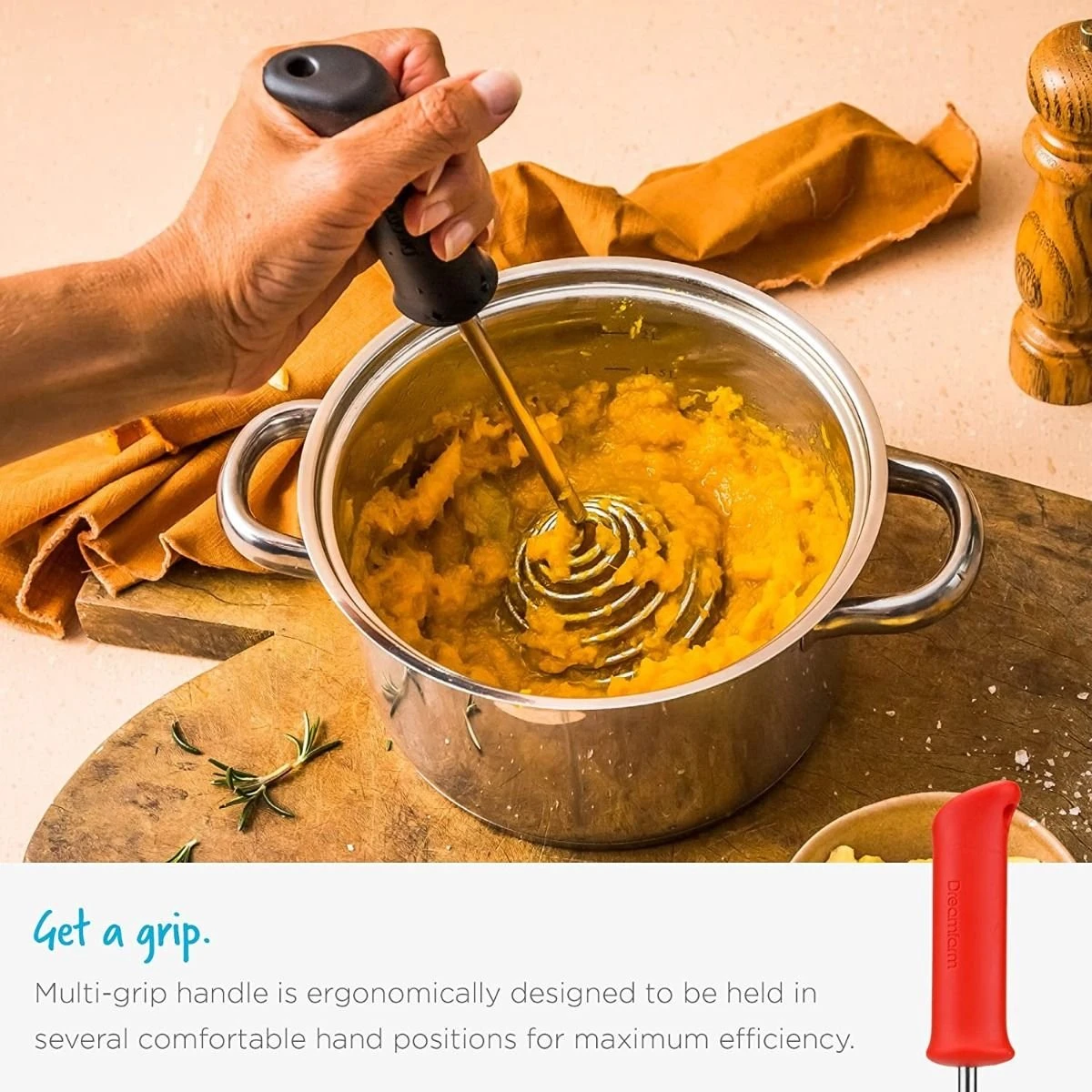 Dreamfarm Smood Potato Masher (Red) Features:
