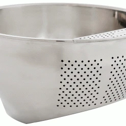 Take the first step in preparing delicious sushi or savory stir fry with this Helen’s Asian Kitchen Stainless Steel 3 Quart Rice Washing Bowl. To start the process, simply measure in rice, cover with water, swish fingers vigorously through rice, tilt to drain water, and repeat until water is clear. The flat solid base stabilizes the bowl for soaking, the angled side helps drain water easily, and the perforated strainer keeps smaller food in while allowing the water to drain. This bowl cleans and soaks rice, grains, and produce before cooking, eliminating any toxin or chemical that occurs during the growing process. Made from stainless steel, this rice washing bowl is lightweight, yet durable, and is dishwasher-safe. Whether you are preparing fresh sushi or cooking a creamy risotto, finish each dish to bistro-grade perfection with your new Helen’s Asian Kitchen Stainless Steel Rice Washing Bowl!