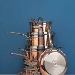 Each pan is bonded with 5 layers of materials, with a thick, 100% pure copper core that provides extraordinary temperature control and quick and even heating. The interior of each pan is 18/10 stainless steel that’s easy to clean and won’t react with acidic ingredients. With the stunning copper and stainless steel combination exteriors, they’re high-performing and beautiful.