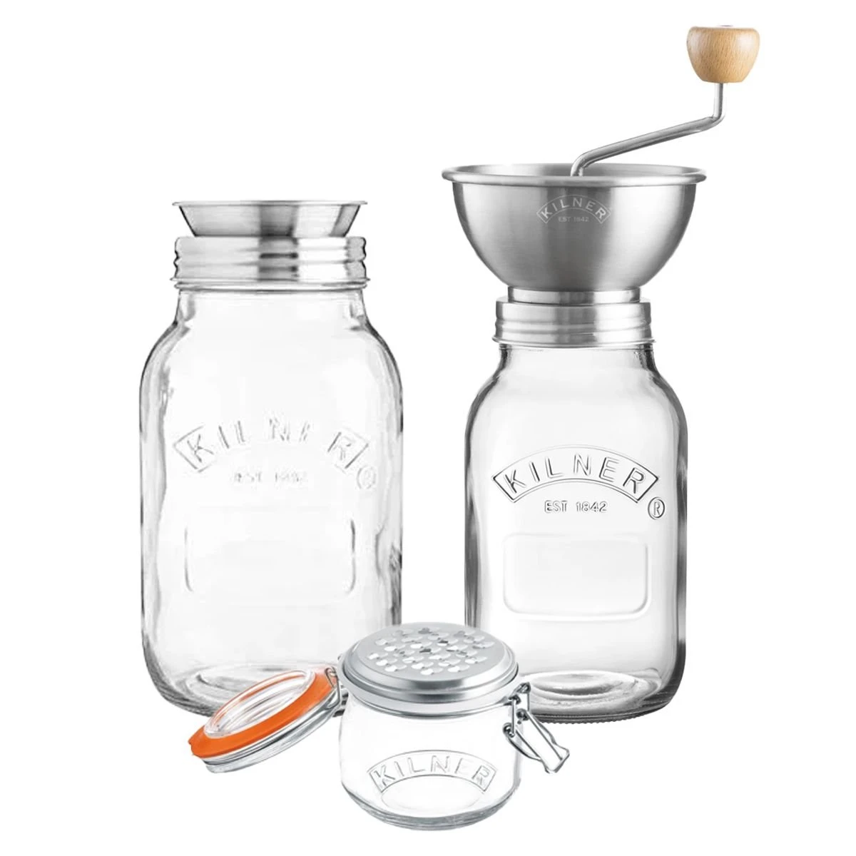Kilner Grater Jar Set Want to keep your grated ingredients fresh and reduce waste in your kitchen? This 17oz glass jar features a swing top sealing lid that keeps grated cheese or vegetables fresh. Equipped with a grating plate that fits snugly over the jar’s mouth, you can prepare cheese for taco night, shred potatoes for latkes, and so much more all in one jar. Read more…