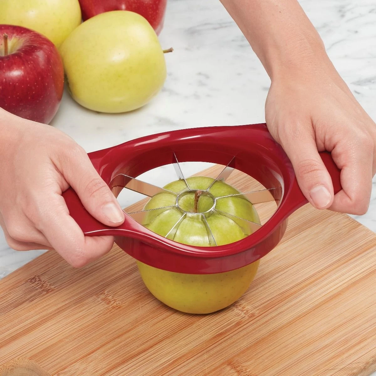 Preparing a healthy snack has never been easier than with the KitchenAid Universal Red Apple Sectioner. This simple tool allows you to prepare apples, pears, and other fruit in a single quick motion. Made from durable plastic with stainless steel blades, this sectioner is built to last and even comes with a 1-year replacement warranty, so you can be confident when using it. This section is designed with ergonomic handles that are easy to use and provide exceptional leverage. Enjoy a few slices of apples without all the hassle, get the KitchenAid Universal Red Apple Sectioner today!