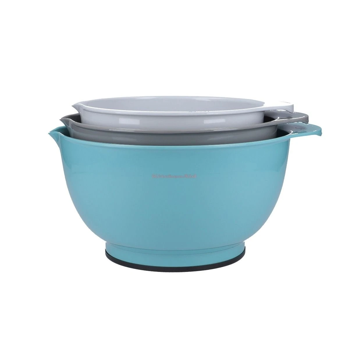 With the KitchenAid Universal Mixing Bowl Set, you’ll have a range of mixing bowls in 3 essential sizes that are perfect for both small and large mixing tasks! This set includes a 2.5-quart, 3.5-quart, and 4.5-quart mixing bowl. Made of durable, high-quality plastic, each bowl has a convenient pour spout so you can easily transfer batter or eggs to your baking pan or fry pan and a non-slip rubber base to keep the bowl in place while mixing. Plus this set is dishwasher-safe for easy cleaning and nests for space-saving storage. For a dynamic set of bowls that’ll help you tackle everyday mixing tasks, try the KitchenAid Universal Mixing Bowl Set today!