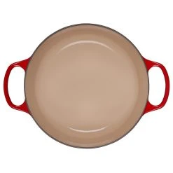- Saucepan, Braiser, Roaster, and French Oven are lined with advanced sand-colored interior enamel with even more resistance to wear