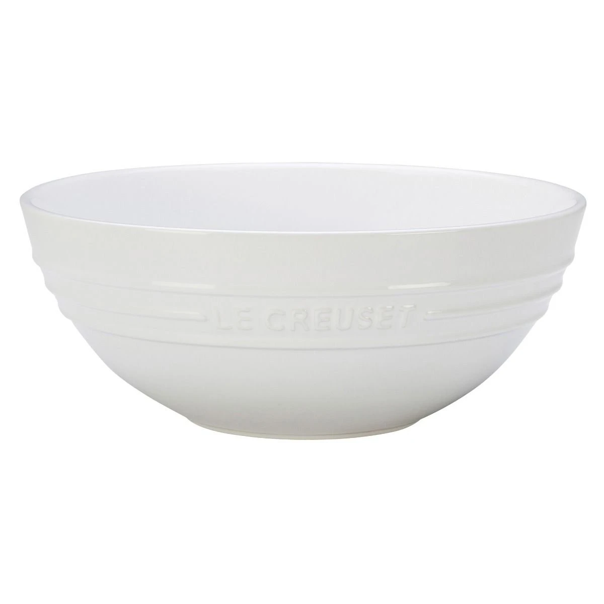 The density of Le Creuset Stoneware prevents moisture absorption to prevent rippling and cracking with a high fired scratch-resistant enamel exterior makes the Le Creuset Multi Bowl durable and strong. Use your Le Creuset Multi Bowl to broil, oven cook, and even microwave vegetables, rice, and more. The Multi Bowl is oven safe up to 500° F. With a 3 quart capacity and a crisp white enamel finish the Le Creuset Multi Bowl is ready to use as a food serving bowl, salad bowl, or even a mixing bowl for cake batter or cookie doughs. Versatile and beautiful the White Multi Bowl by Le Creuset is a stoneware peice that you will enjoy for years to come.