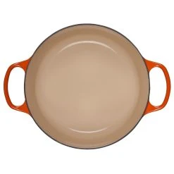 - Saucepan and French Oven are lined with advanced sand-colored interior enamel with even more resistance to wear