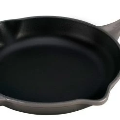 Since 1925, Le Creuset has been making French enamel over cast iron such as the Le Creuset 5-Piece Signature Set in an Oyster Grey glaze (MS1605-7FSS) for professional and family cooks worldwide who love to stir and savor the aroma of sauces, soups, roasts, fresh bread and classic skillet fare. This heritage set of cookware includes a 5.5 qt. round casserole oven with lift handle and phenolic knob versatile enough to do roasts and fresh bread. The 1 ¾ qt. sauce pan is ideal for ladled soups and broths. The classic 9” skillet with two pouring vents is lined with black enamel to eliminate the need to season.