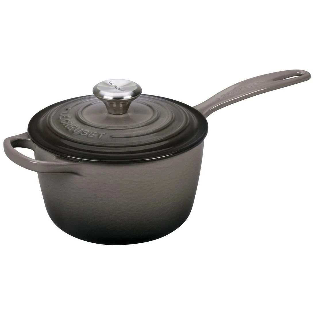 - Le Creuset 1.75 Qt. Signature Enameled Cast Iron Saucepan with Stainless Steel Knob | Oyster Grey – Flawless sauces, puddings, and simple syrups can be firmly within your ability when you use the 1.75 Quart Le Creuset Enameled Cast Iron Saucepan. This construction gives you precise, responsive temperature control for properly thickened, or the most delicate recipes. You can have easier sauce-making processes due to the smooth, curved interior and perfectly rounded base. The Le Creuset enameled cast iron saucepan can smoothly transition from freezer to oven and the table without chipping and cracking from the temperature extremes. Discriminating cooks over the years know and trust Le Creuset for high standards of functional excellence, superior construction, and lasting style.
