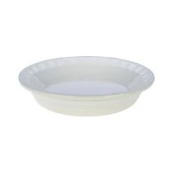 - Le Creuset 9″ Fluted Heritage Pie Dish | White – At 9 inches across by 1.5 inches tall, the Le Creuset PG1855 Heritage pie dish is a good option for making deep-dish apple pies with golden latticework, cheesecakes with buttery graham-cracker crusts, or pumpkin pies & pecan pies for holiday get-togethers. The stoneware used in Le Creuset’s pie bakers is chosen for its even heat distribution and thermal resistance, able to withstand high temperatures (over 2,000° F), and transfer straight from the oven to the refrigerator without cracking. A thick, lustrous glaze prevents moisture from warping the pie pan and itself resists scratching from knives and staining from berries & pie filling. The interior is nearly nonstick for easy pie release and quick cleanup. A dimpled edge helps to flute the pie crust.