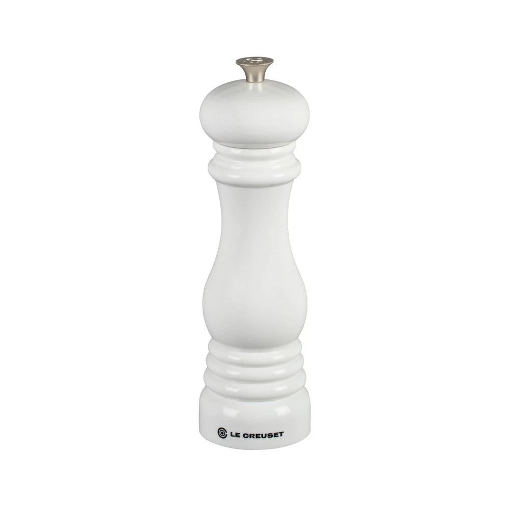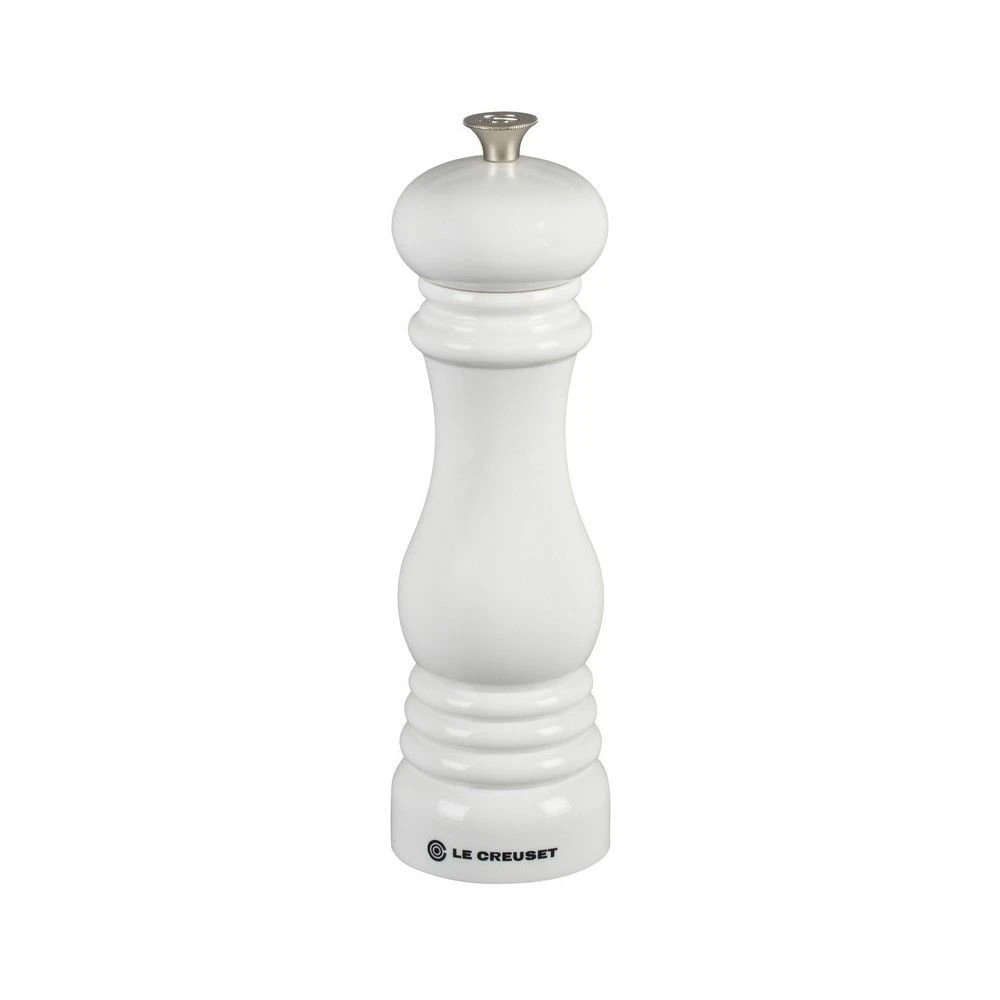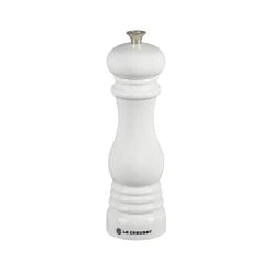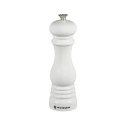 - Le Creuset Pepper Mill | White – Don’t limit your recipes with pre-ground pepper; instead, add real flavor with freshly cracked pepper using this Pepper Mill by Le Creuset! This classically French-designed mill combines an iconic silhouette and a modern ceramic grinding mechanism. Unlike most grinding mechanisms, ceramic is both strong enough to grind pepper and impervious to the corrosive quality of salt. Le Creuset has designed this 8” mill with a high-capacity chamber—it holds over a ¼ cup of peppercorns—so you can grind more and refill less!