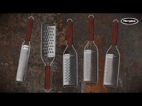 Microplane’s Master Series graters make a statement in the kitchen, pairing rich natural walnut handles with ultra-sharp stainless steel blades manufactured in the USA to provide the highest quality tools for your cooking needs. As a tribute to the company’s woodshop heritage, the Master Series graters feature beautiful oil-finished walnut handles crafted from US-sourced lumber that provide a warm, tactile grip and the elegant look of natural wood. Microplane’s signature photo-etched blades are crafted from 18/8 stainless steel to provide durable and reliable results whether you are grating, shredding, or zesting. The nonskid base provides an added measure of stability in use and the re-usable protective cover protects the blades in storage. The Coarse blade produces small gratings of hard cheeses, coconut, carrots and more forĀ useĀ in salads or as beautiful garnishes.