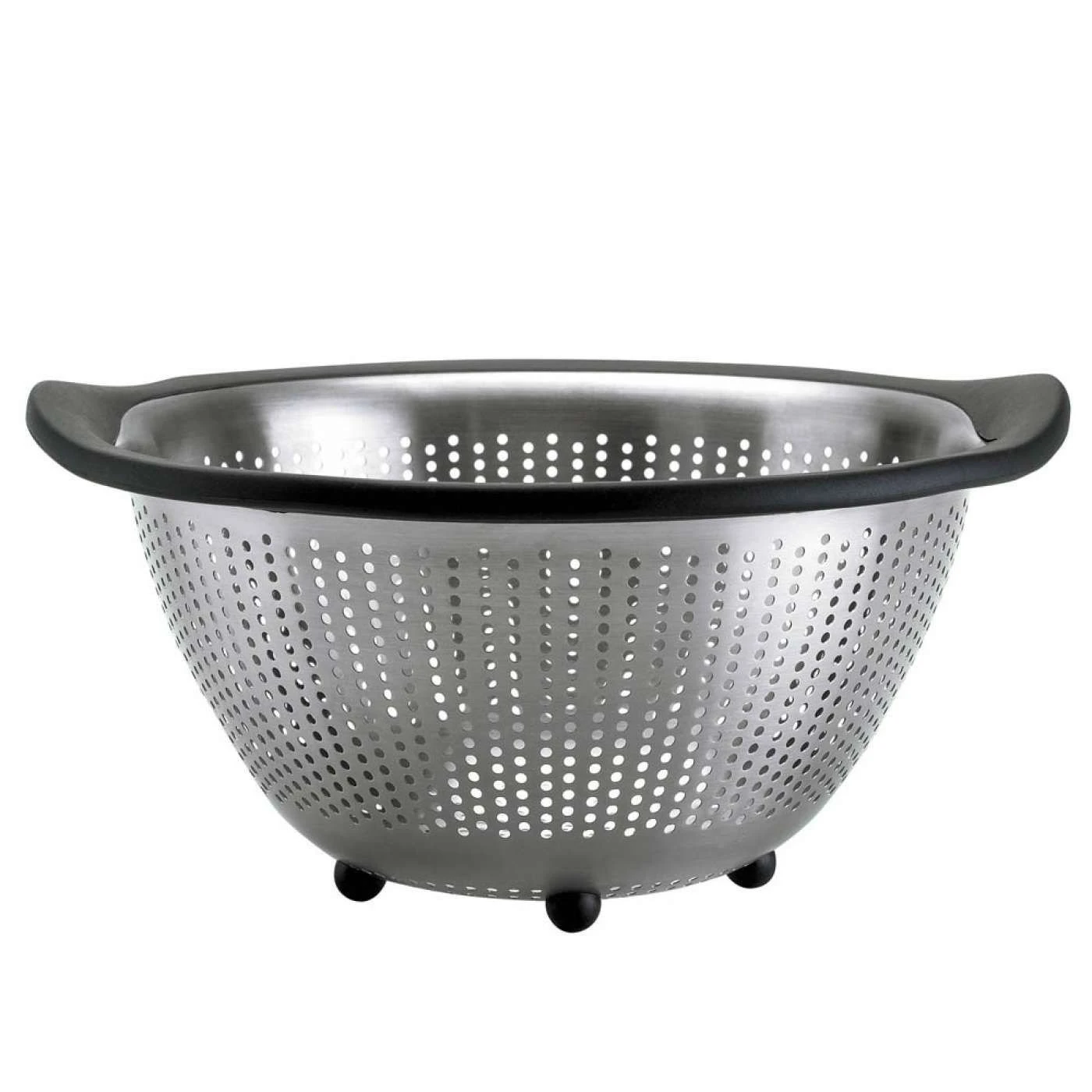 Serve up a medley of fresh fruits from your garden with the Oxo 5 Quart Stainless Steel Colander. With this colander you get a generous 5 quart capacity that is exceptional for fruits, vegetables, pasta, and more! The high quality stainless steel material will remain corrosion free, while the rubber handles provide easy gripping and non-slip footing ensure your colander stays put. Strain your produce, pasta, and more with your new Oxo 5 Quart Stainless Steel Colander