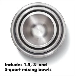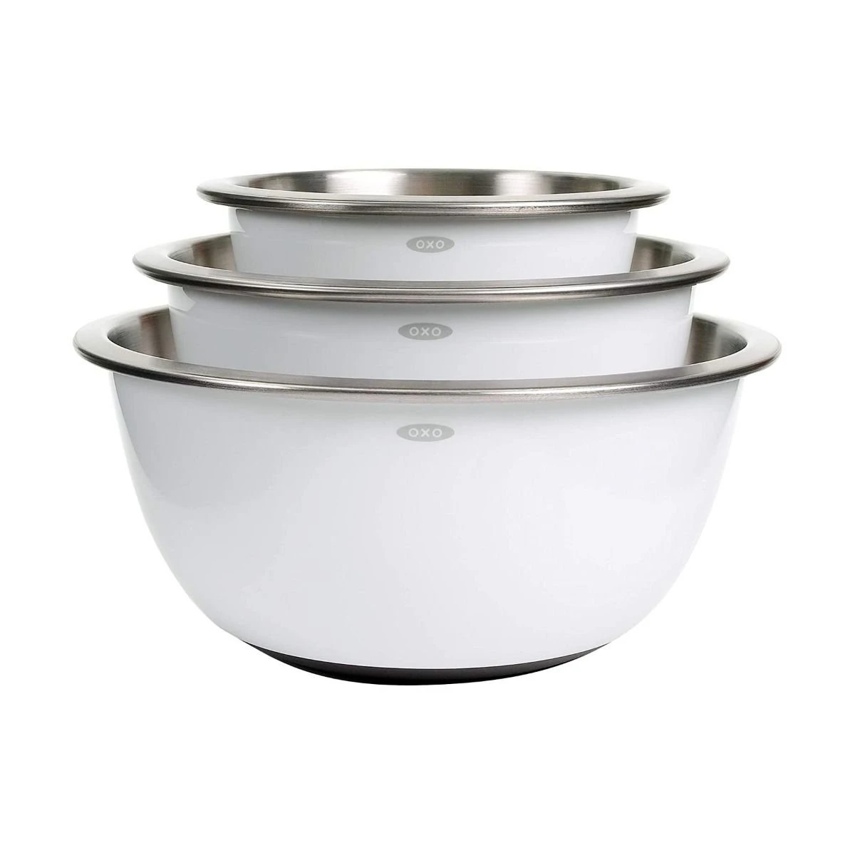 OXO Good Grips 3-Piece Stainless Steel Mixing Bowl Set (White) Features: