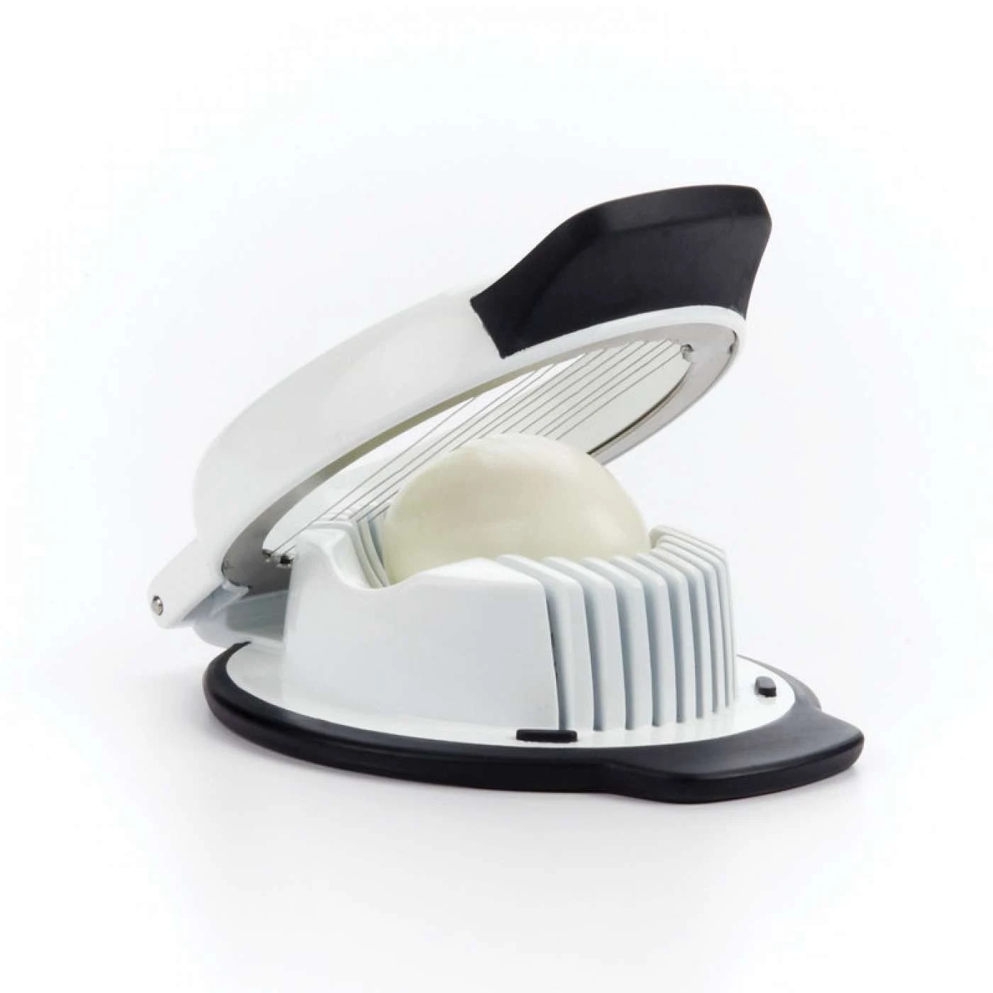 - Holder cradles the egg in either direction so you can make round or oblong slices