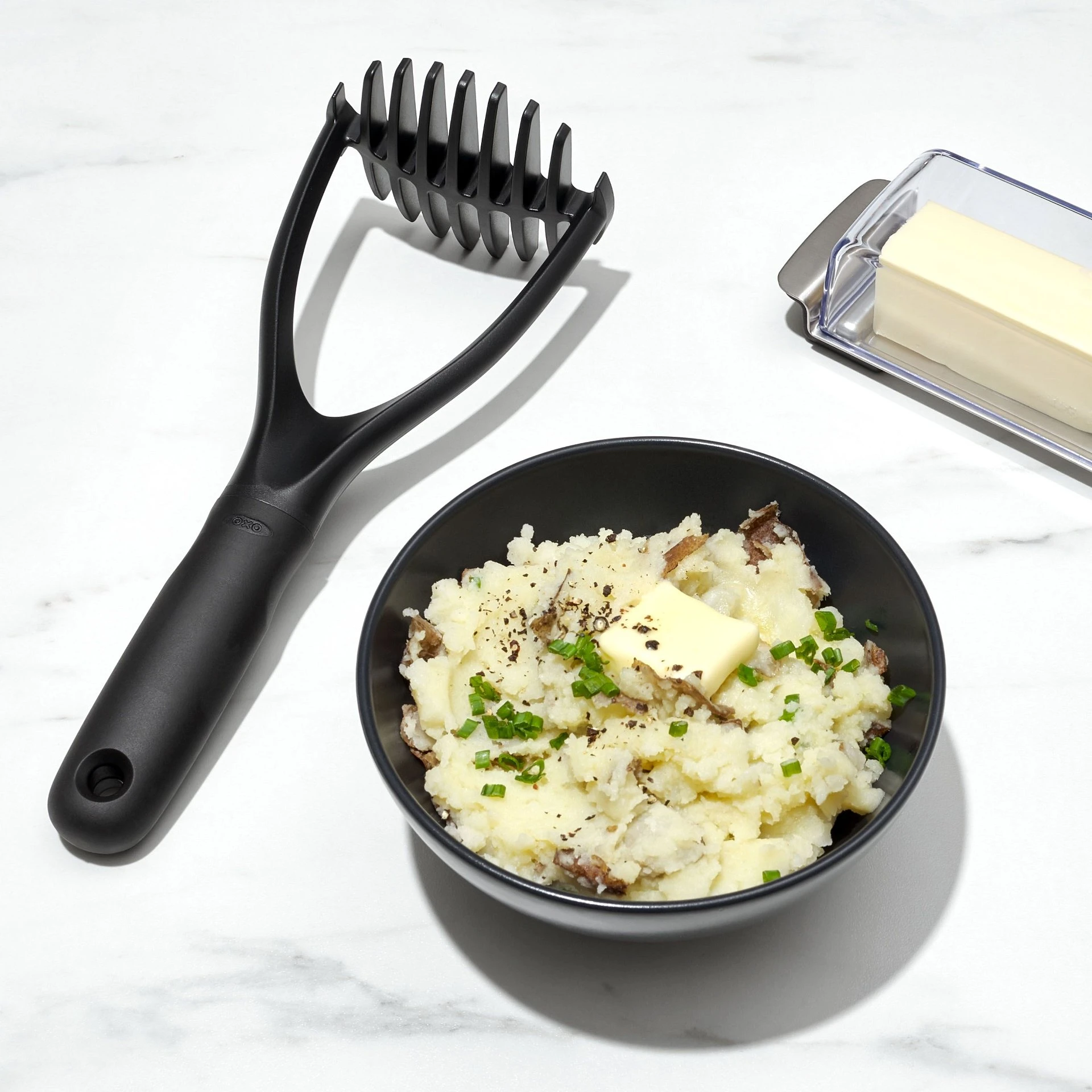 Whip up a batch of creamy mashed potatoes with the OXO Nylon Potato Masher! This sturdy potato masher is made of durable nylon that’s safe to use with nonstick cookware and has a comfortable non-slip handle for control. Plus, it’s dishwasher-safe and heat-resistant up to 400°F so you can mash freshly cooked potatoes right in your pot or pan!