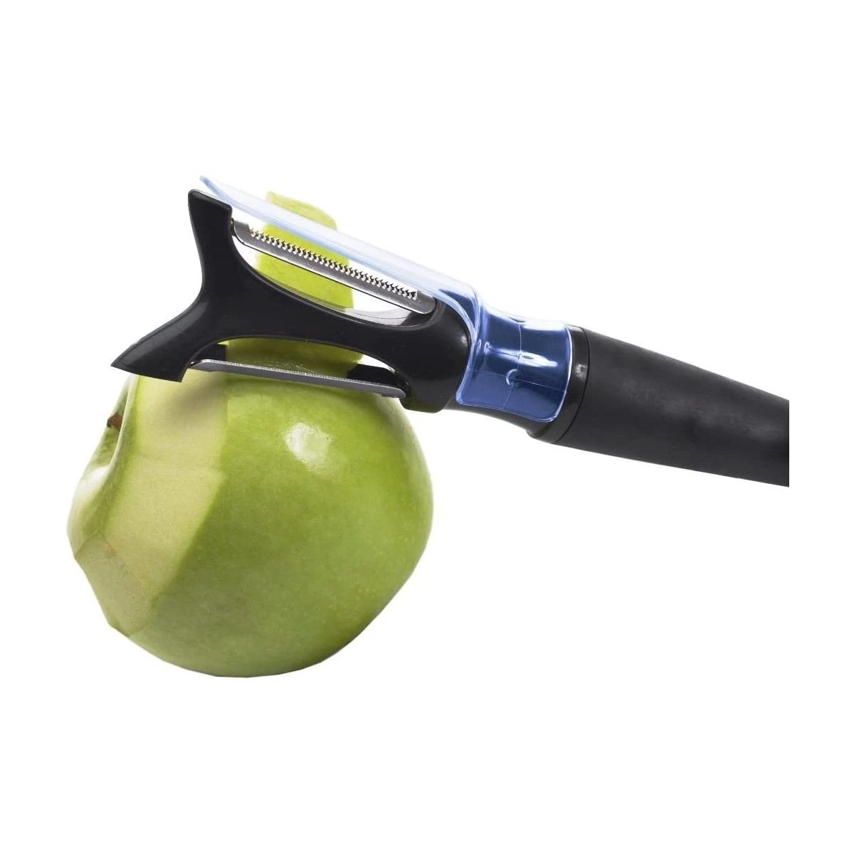 - Dual blade peeler: serrated for soft skin produce, straight for hard skin produce