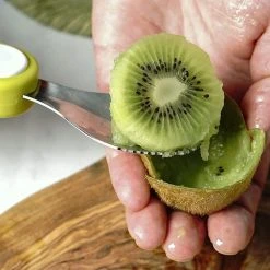 - A serrated spoon allows for easy kiwi removal