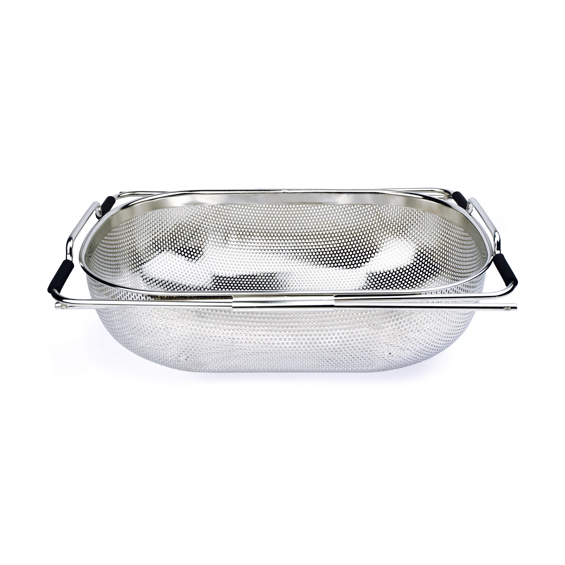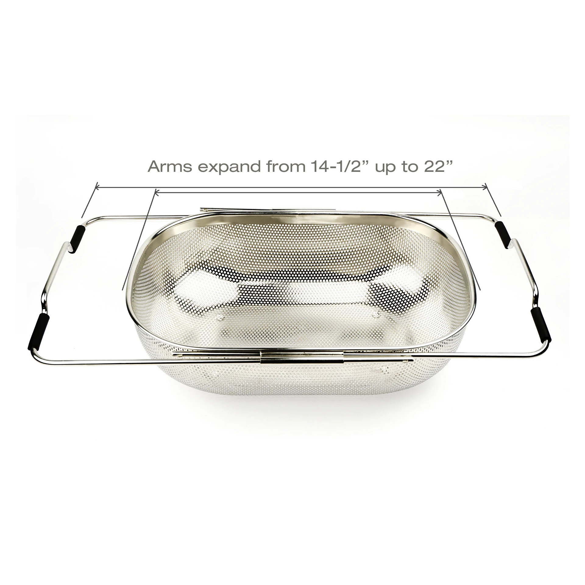 Drain family-sized batches of fruit, vegetables, and pasta with the RSVP Endurance Precision Pierced Over-the-Sink Colander! This large drainer is made of 18/8 stainless steel and has adjustable steel arms that extend between 14.5” to 22” to fit most sink sizes. Built with rubber handles that secure to the sink and make transporting around the kitchen a breeze, this large colander is designed with small drainage holes that won’t let small foods slip through while allowing water to drain away quickly and efficiently. For washing, straining, and draining large batches of fruits, rice, and other foods with ease, try the RSVP Endurance Precision Pierced Over-the-Sink Colander today!