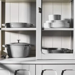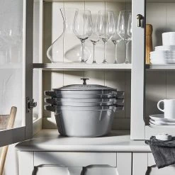 Upgrade your cookware and bakeware essentials with the all-encompassing Stackable Cocotte, Braiser, and Grill Pan Set from Staub. Crafted in France from Staub’s signature enameled cast iron, this set features a neutral gray exterior and textured black matte enamel interior that does not require seasoning, unlike traditional cast iron. This design allows for exceptional heat retention and distribution and is nearly nonstick for easy food release. The defining feature of this set is its innovative, space-saving design; gently sloped sides allow for secure nesting, taking up minimal storage space in your cabinets or on your shelves. Included are attachable rubberized bumpers that help prevent any chips or scratches when storing. With this set of three dishes, you can bake pastas and casseroles, simmer hearty soups, grill fish, braise chicken, and more — these pieces can be used on all stovetops (including induction), in the oven up to 500°F, in the microwave, and in the fridge or freezer. Though dishwasher-safe, hand washing is recommended to preserve the quality and longevity of the enamel.Â