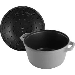 Staub Stackable Cocotte, Braiser, and Grill Pan with Lid – Graphite Grey Features:
