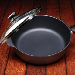 Swiss Diamondâs HD 3.8-Quart Saute Pan with Lid is the perfect size for prepping your vegetables, searing a roast, and creating scrumptious sauces all in one pan! The nonstick surface is unequaled for food release and nearly effortless clean-up. The ergonomically designed handle will stay cool up to 500°F while the helper handle makes moving this pan from stovetop to oven safe and easy. Add this Swiss Diamond HD 3.8-Quart Saute Pan with Lid to your kitchen arsenal today!