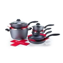 This easy-to-clean non-stick frying pan is rivet-free and protects against bacteria.  The flat base will not tip, spin, or warp while you are perfecting your dish. The comfortable, ergonomic, stay-cool handles can withstand heat up to 500°F so you can transition effortlessly between stovetop to oven. With a sleek, high-end finish, your Swiss Diamond cookware will look just as great on the tabletop so you can serve a warm soup or sauce. With this wonderful Swiss Diamond HD 3.8-Quart Non-Stick Saucepan with Lid in your kitchen, you will be ready to spice up your favorite recipes!Â