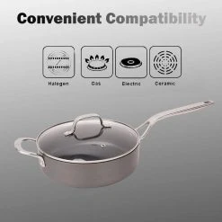 - Safe on solid plate, radiant ring, ceramic, halogen, and gas cooktops