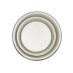 Capture the classic farmhouse look with this set of Enamel-Coated Mixing Bowls (Set of 3) from TableCraft! Whether you’re mixing ingredients for a fresh fruit cobbler, serving a crisp garden salad, or just using as a decorative touch, these durable steel bowls feature a clean white enamel finish with a black painted rim reminiscent of vintage enamelware. Heat-safe up to 500°F, these bowls are induction-safe and can be used in the oven, on the stove top, and even over an open flame. They can also be chilled in the freezer and stored in the refrigerator when making fruit salads, dressings, or letting cookie dough chill. Due to the steel core beneath the versatile enamel finish, the mixing bowls are not suitable for any use in the microwave. The set includes three bowls, (1) 5.25 Qt, (1) 3.25 Qt, and (1) 1.625 Qt, that nest within each other for compact storage and all of the bowls are dishwasher-safe for easy cleanup.