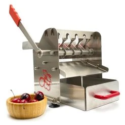 Get to enjoying fresh cherries faster and easier with the The Cherry Stoner Jr. from The Sausage Maker (TSM)! Designed and manufactured by TSM in their Buffalo, NY, facility, this cherry pit remover is a commercial-grade machine that quickly and efficiently removes the pits from five cherries with each pull of the handle. Pitted cherries drop out below, while pits are separated for discard. The Cherry Stoner Jr. is constructed of precision-machined stainless steel making it a durable and easy-to-clean kitchen helper that will provide years of service!