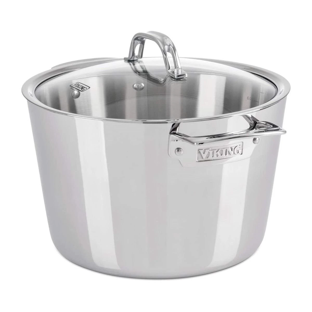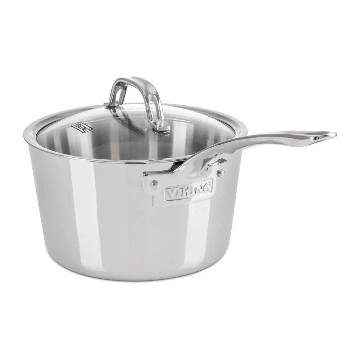 Practically indestructible, stainless steel cookware has been used in home and commercial kitchens for years for its durability, easy maintenance, and ability to not react with foods. But not all stainless steel cookware sets are equal—the Viking Contemporary 3 Ply Mirror 7-Piece Cookware Set combines functionality and form for a wide array of dishes! Made from non-reactive 18/8 stainless steel interiors, aluminum cores, and magnetic stainless steel exteriors, this cookware set gains its inspiring design from the traditional Windsor pan, which features wide rims that taper downward for the effective evaporation of liquids, particularly for reducing sauces or soups all while creating a timeless look with a mirror finish. With tempered glass lids, this cookware set promotes efficient heat circulation and evaporation control that works in tandem with the Windsor design. The 3-ply construction with stainless steel exteriors and aluminum cores promotes exceptional heat transfer throughout their surfaces while the magnetic stainless steel bottom proves to be ideal for all cooktops, including induction. Included in the 7-Piece Cookware Set are one 10″ fry pan, 3.4-quart saute pan with lid, 2.4-quart sauce pan with lid, and an 8-quart stock pot with lid. Each piece of cookware features signature stay-cool handles and brag heat resistance of up to 600°F/315°C, making them oven, broiler, and grill-safe; however, when the glass lids are present, they are oven-safe only up to 400°F/204°C. When you are done using any of the pieces of the Contemporary 3-Ply Mirror Cookware Set, each piece is dishwasher-safe for an easy clean. Backed by a limited lifetime warranty, the Viking Contemporary 3 Ply Mirror 7-Piece Cookware Set allows you to prepare the basics and specialty dishes for your family while doing it classically!